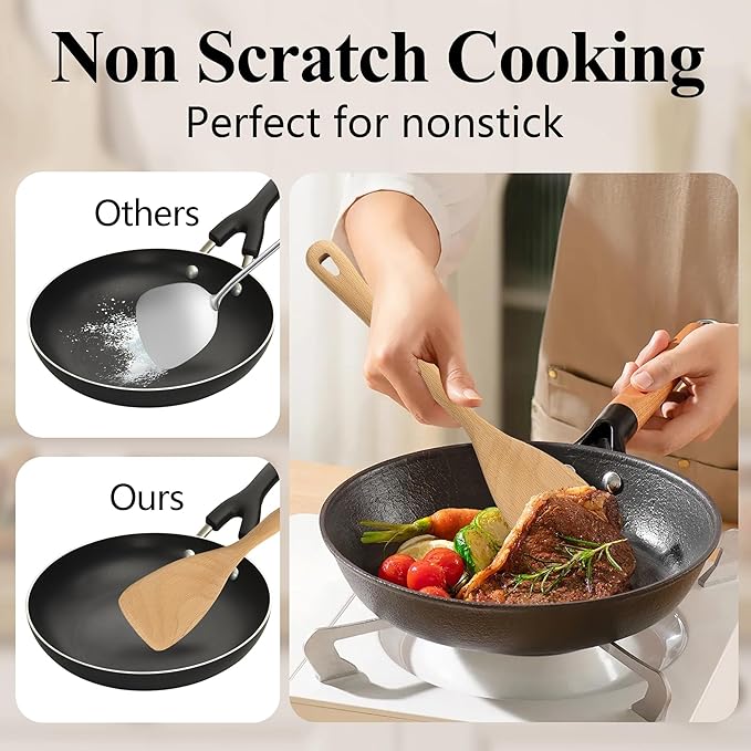 Wooden Spatula Set, 6 Pack Kitchen Wood Slotted Spoon Spatulas Turner Utensils for Cooking, Non Toxic Solid Wooden Spatulas Natural Wood Serving Spoons Spaghetti Utensil Set for Nonstick Cookware