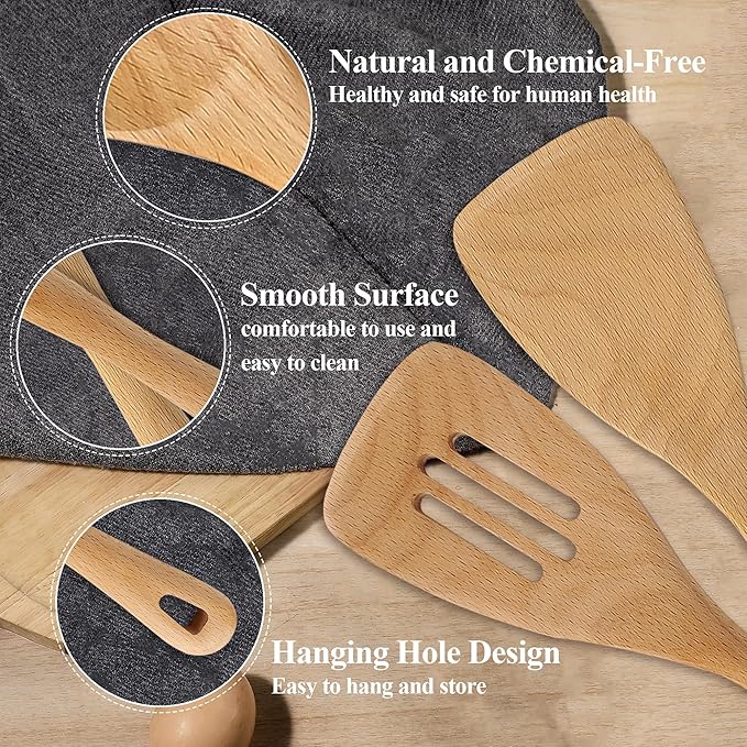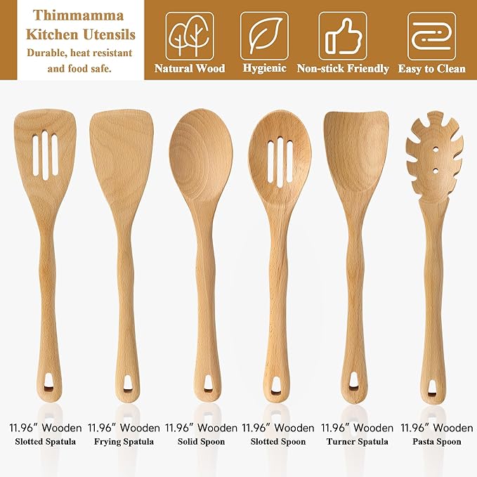 About This 6 Piece Wooden Cooking Utensils Set: This versatile wood kitchen utensils set includes a flat wooden spatula, wooden... Read more