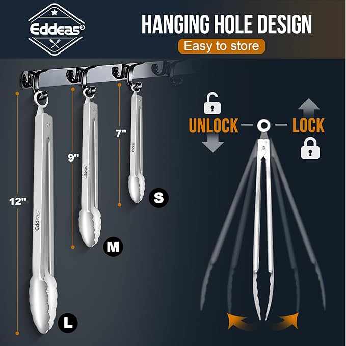 About This FOOD GRADE STAINLESS STEEL - Eddeas kitchen tongs are made food-grade all stainless steel in one piece for... Read more
