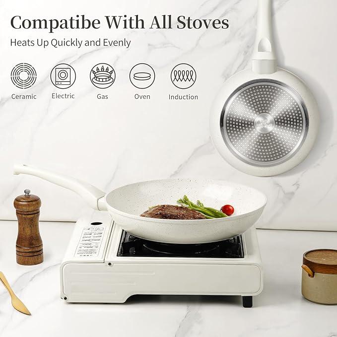 About This 【Eco-Friendly Non-Stick Ceramic Frying Pan】The Ceramic frying pan combines the natural texture and durability of marble to create... Read more