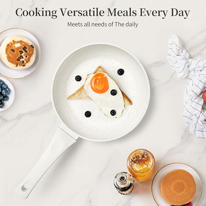 8 Inch Non Stick Frying Pan - White Ceramic Non Stick Skillet Frying Pans, Safe&No Toxic Egg Omelette Frying Pan, Small Nonstick Cookware Cooking Pan, Induction Compatible, PFOA&PFAS Free