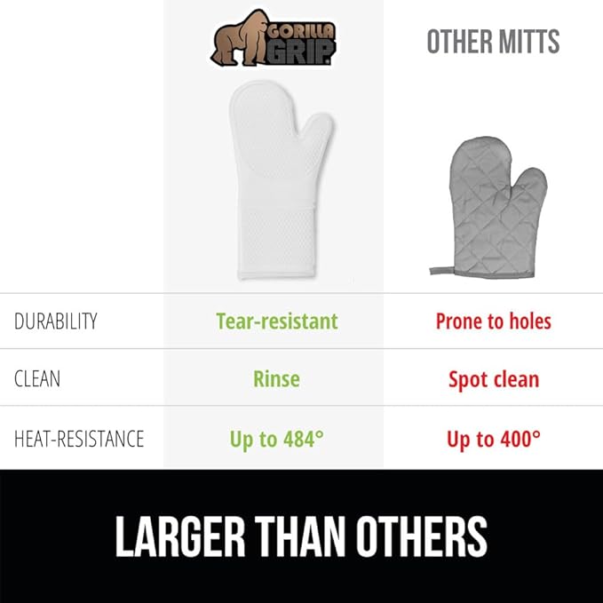 GORILLA GRIP BPA-Free Soft Silicone Oven Mitts, Heat Resistant and Waterproof Cooking Gloves, Thick Cotton Lining, Flexible Gripping for Baking Grilling, Kitchen Potholders Set of 2, 12.5x8.3, White