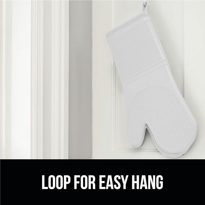 GORILLA GRIP BPA-Free Soft Silicone Oven Mitts, 14.5x8.3, Heat Resistant and Waterproof Cooking Gloves, Thick Cotton Lining, Flexible Gripping for Baking Grilling, Kitchen Potholders Set of 2, White
