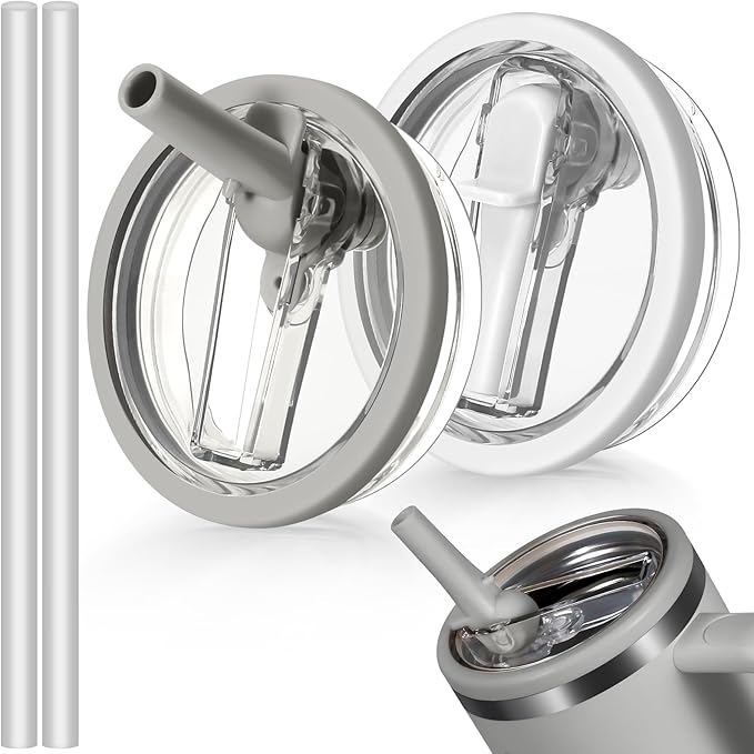 40oz Flip Straw Leak Proof Lid for Stanley H2.0 Quencher Protour Tumbler, 2 Pack Spill Proof Lid Replacement Straw Cover Top for 40 OZ Stanley Cup Accessories (Ash, White)