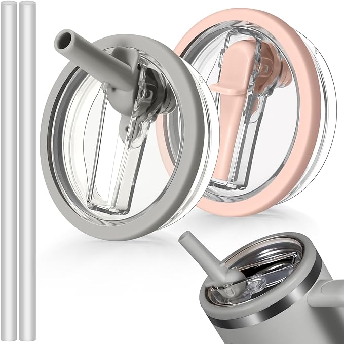 40oz Flip Straw Leak Proof Lid for Stanley H2.0 Quencher Protour Tumbler, 2 Pack Spill Proof Lid Replacement Straw Cover Top for 40 OZ Stanley Cup Accessories (Ash, Light Nectarine)