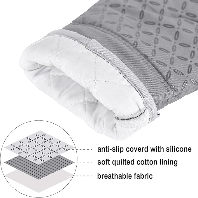 KEGOUU Oven Mitts and Pot Holders 6pcs Set, Kitchen Oven Glove High Heat Resistant 500 Degree Extra Long Oven Mitts and Potholder with Non-Slip Silicone Surface for Cooking (Light Gary)