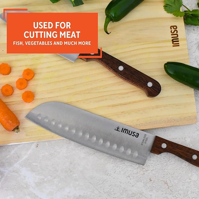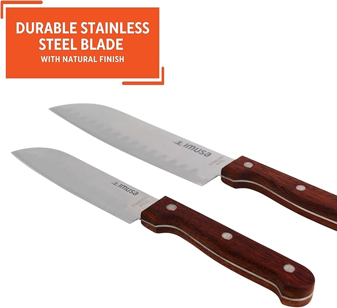 IMUSA, 2pc 5" & 7" Santoku Knife Set w/Wood Handle, Stainless Steel Kitchen Cooking Knifes
