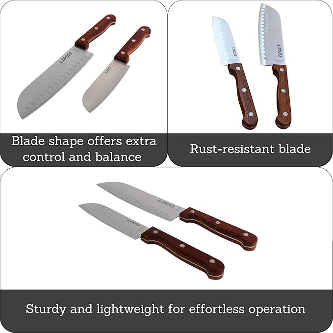 About This PERFECTLY SIZED: This 5” and 7” Santoku knife set offers the ideal range of blade lengths for various... Read more