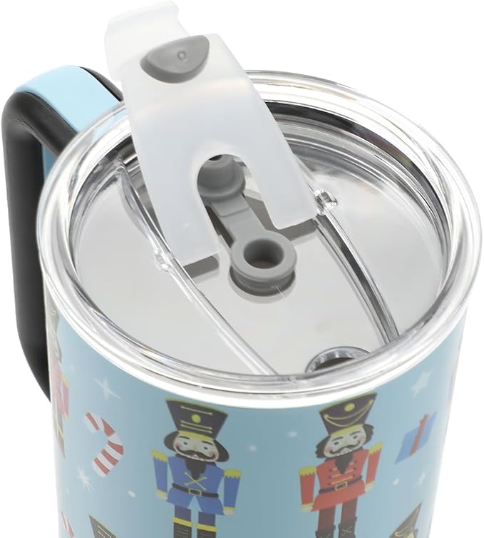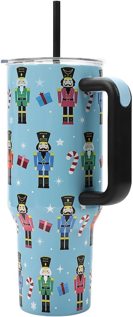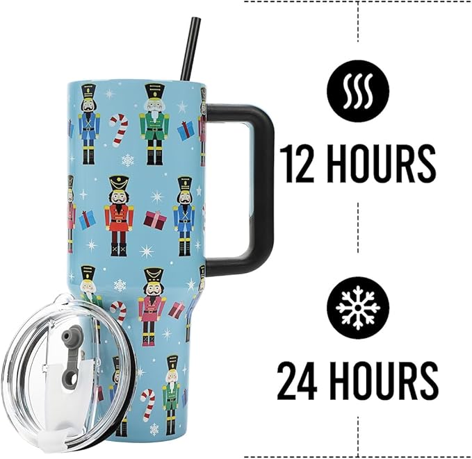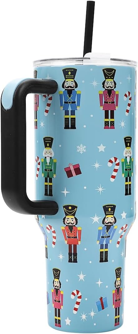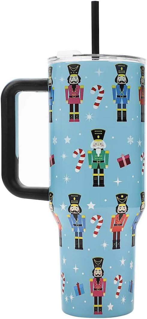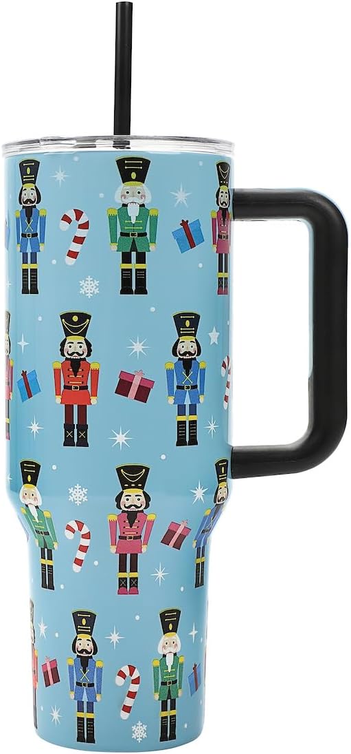 Bioworld Nutcrackers Vacuum Insulated 40 Oz. Stainless Steel Tumbler with Reusable Straw & Leak-Proof Lid, Easy Carry Handle for Travel or Home