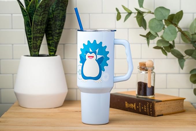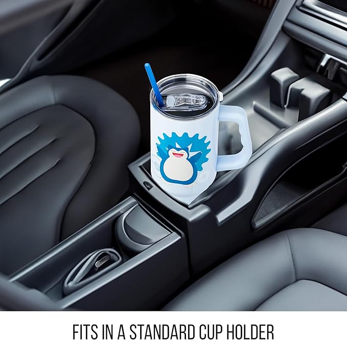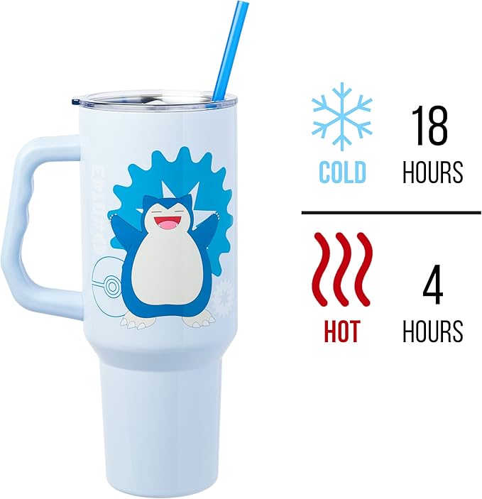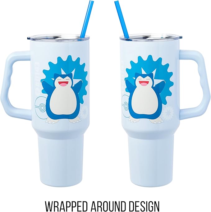 Silver Buffalo Pokémon Stainless Steel Tumbler with Handle Featuring Snorlax, Fits in Standard Cup Holder, 40 Ounces