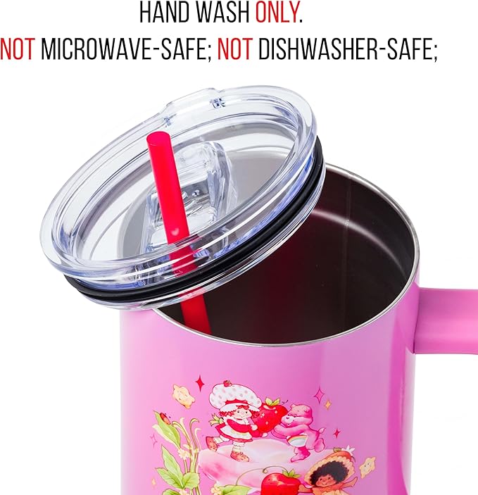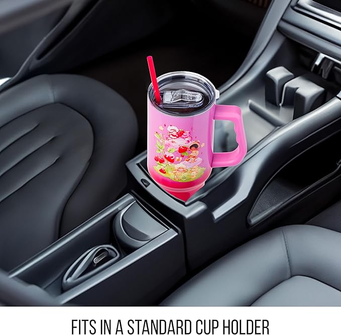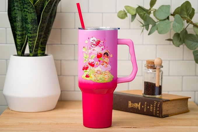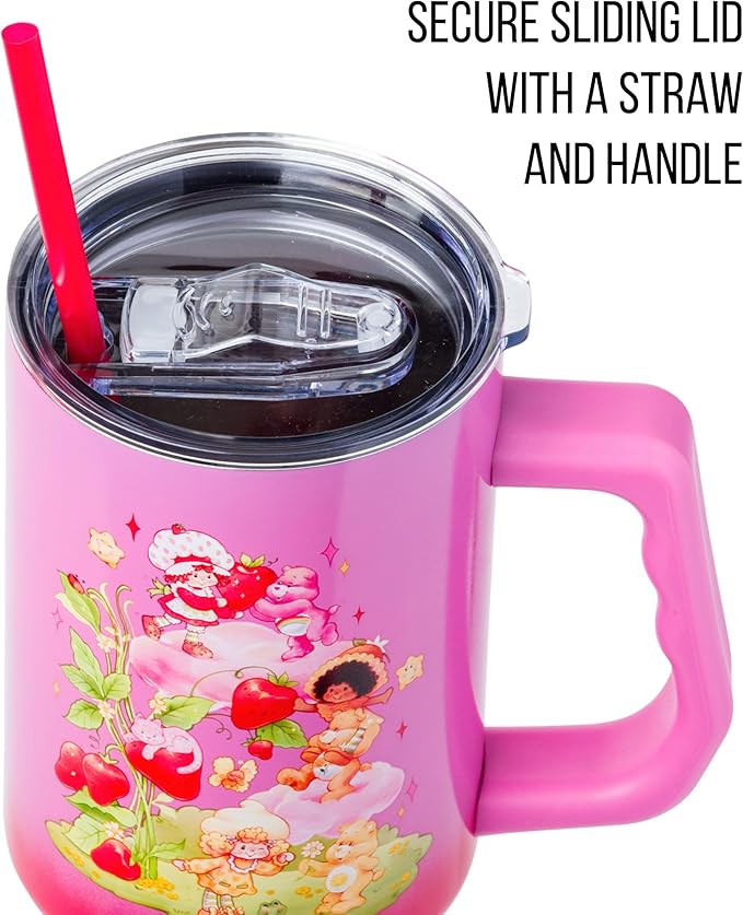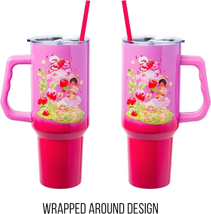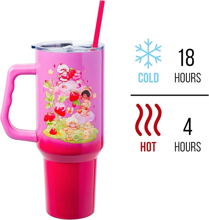 Silver Buffalo Care Bears and Strawberry Shortcake Ombre Stainless Steel Tumbler with Handle, Fits in Standard Cup Holder, 40 Ounces