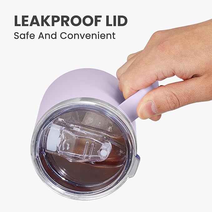 MEWAY 12oz Coffee Mug With Handle 2 Pack Bulk,Stainless Steel Insulated Travel Tumblers With Sliding Lid,Double Wall Vacuum Camping Cup for Hot & Cold Drinks Tea (Lilac&Pink,Set of 2)