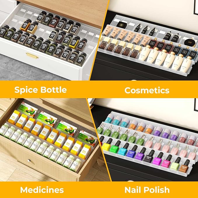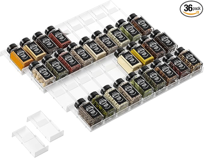 Famhap Spice Drawer Organizer, 36PCS Interlocking Expandable Seasoning Rack Tray Insert for Kitchen Drawers, Spice Rack Drawer for Spice Jars