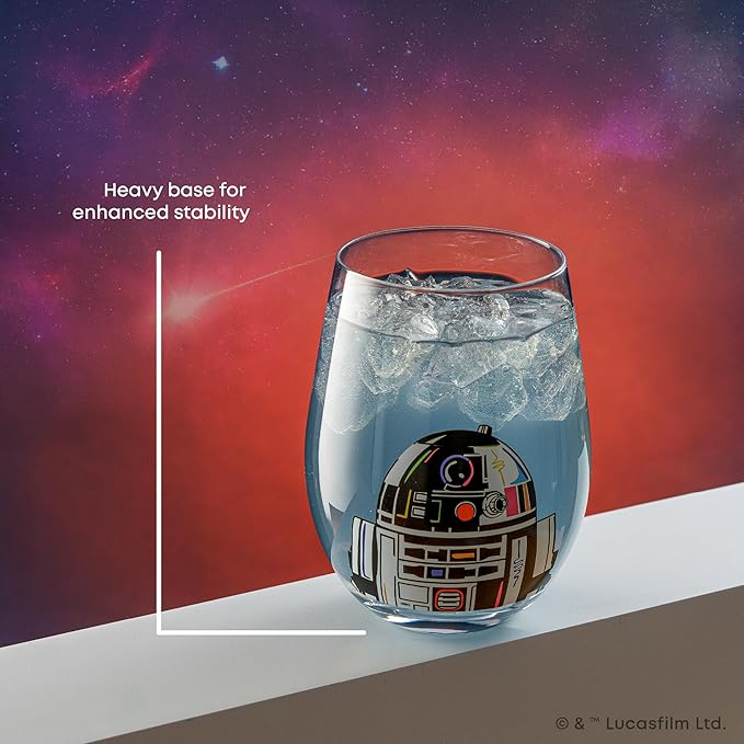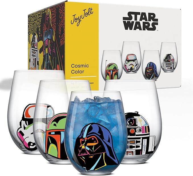 JoyJolt Star Wars Cosmic Color Stemless Drinking Glasses, 19oz Glass Cups ft Darth Vader, Stormtrooper, Boba Fett, R2-D2 - Star Wars Kitchen Glasses Set of 4, Gifts for Men, Women & Adults