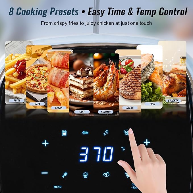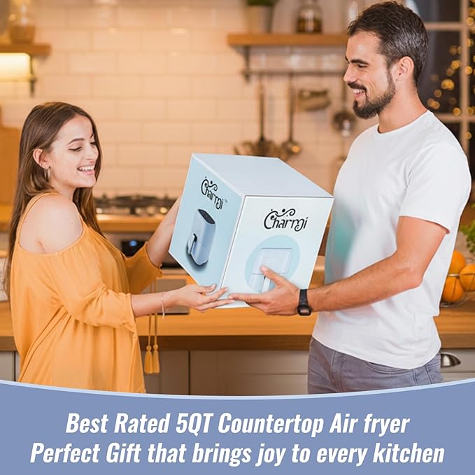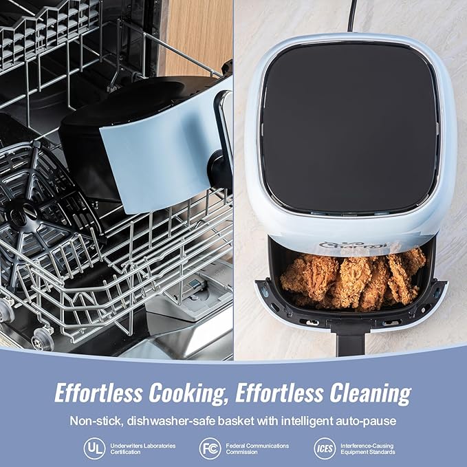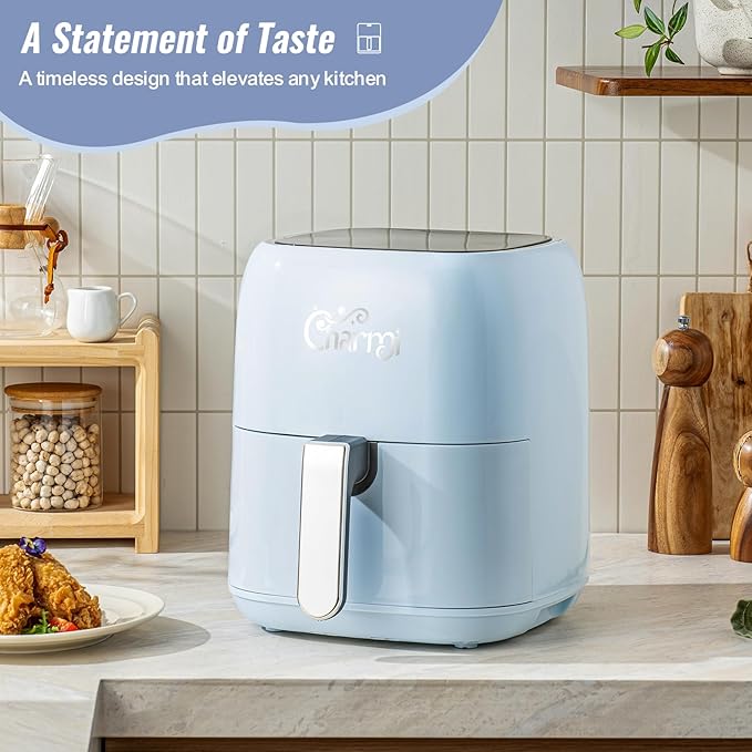 Charmi 5QT Air Fryer โ Beautiful Retro Design, Stylish Countertop Look, Nonstick & PFAS-Free, Safe Auto Shutoff, Digital Touchscreen, 8 Cooking Presets (Pastel Blue)