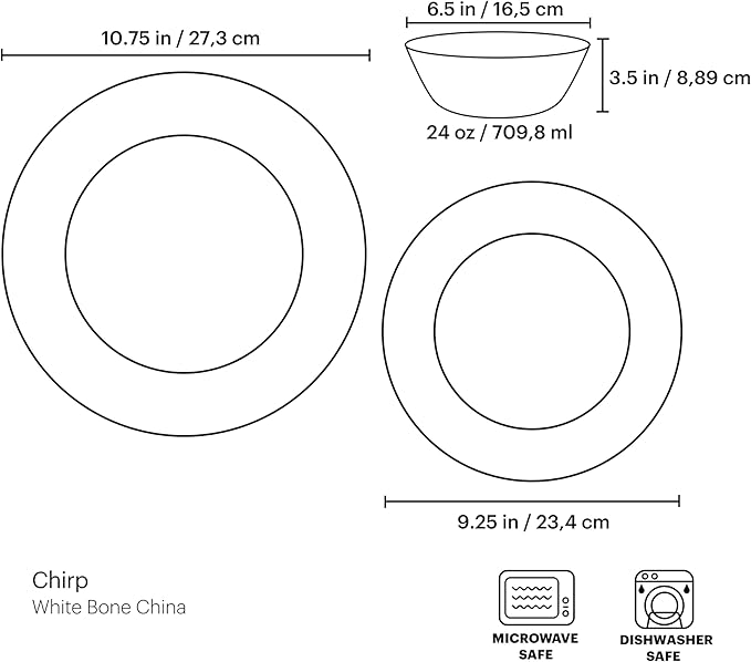 About This Collection: Chirp Material: porcelain Dishwasher safe Microwave safe 12-piece dinnerware set includes: (4) dinner plates, (4) accent/salad plates,... Read more