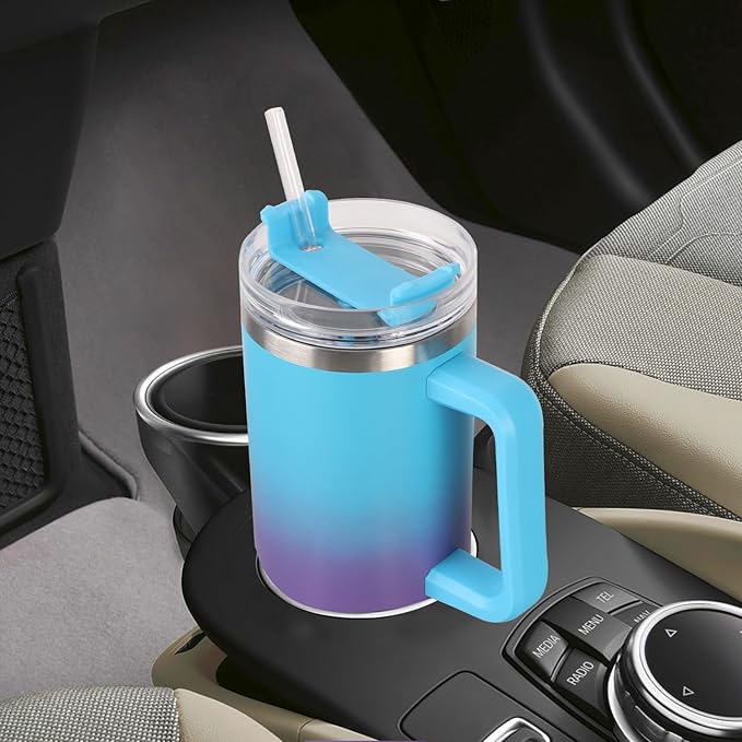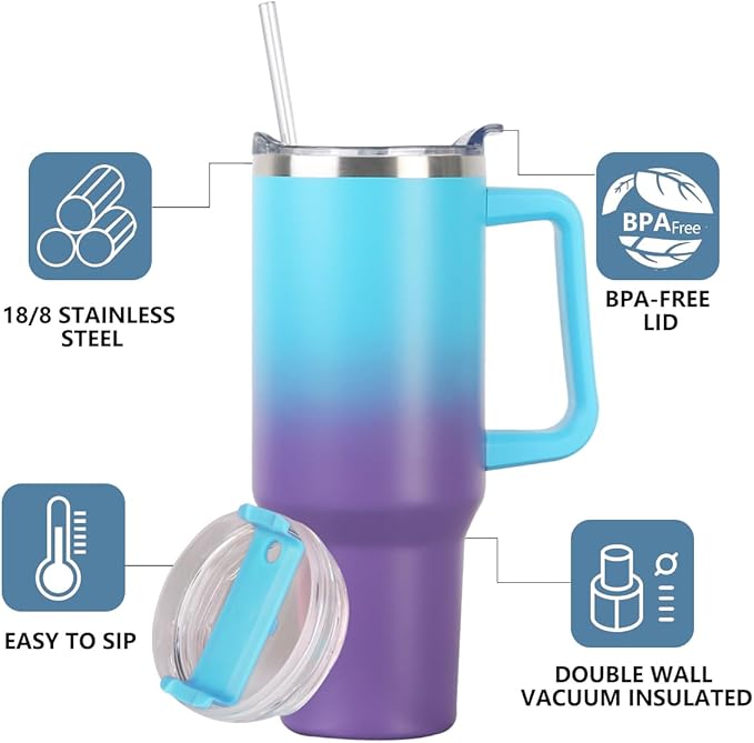 SYACOT 40 oz Tumbler with Handle and Straw Stainless Steel Insulated Tumbler Leak Proof Lid and Straw Lid Reusable Travel Mug Coffee Mug Cup Dishwasher Safe Keep Drinks Cold and Hot (Amethyst)