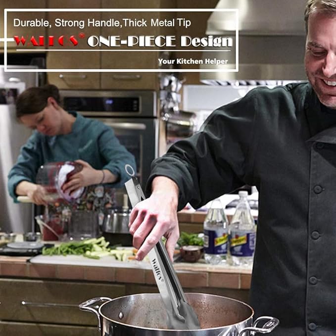 Walfos tongs for cooking, All Metal Kitchen Tongs 600℉ Heat Resistant, Heavy Duty Locking Tongs 2-piece 12 Inch