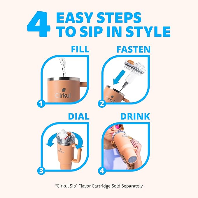 Cirkul 40oz. Apricot Stainless Steel Tumbler with Handle, All-Day StrawSip™, Double-Wall Insulated