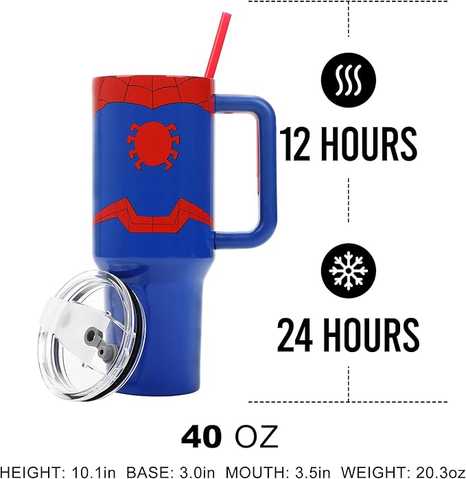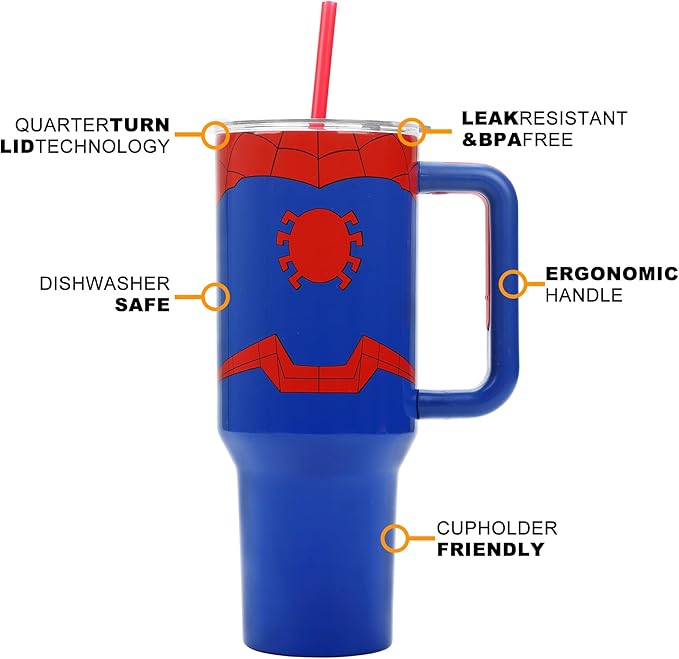 Bioworld Marvel Spider-Man Costume 40 Oz Stainless Steel Tumbler With Handle-OSFA