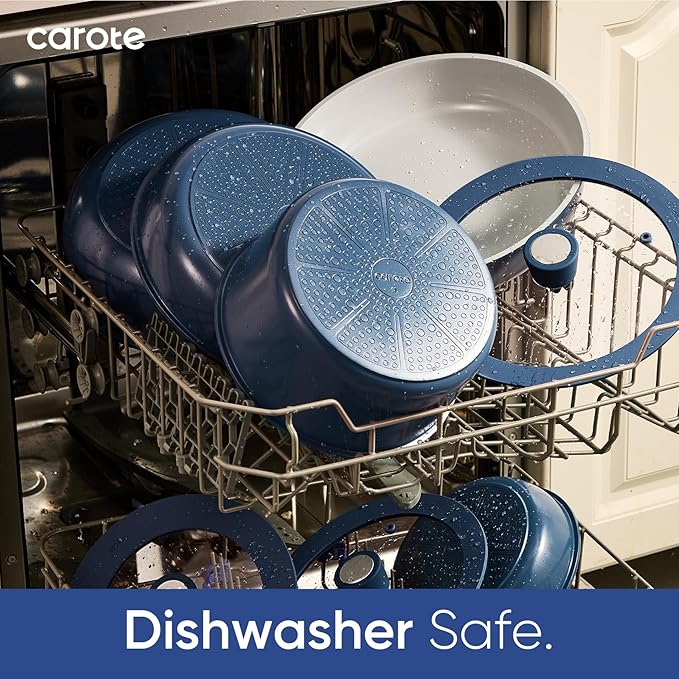 CAROTE 27pcs Ceramic Cookware Set Nonstick, Pots and Pans Set Non stick, Non Toxic Cookware, Dishwasher/Oven Safe, RV/Camping Cookware Set, Pan and Pot with Kitchen Utensils, Navy Blue