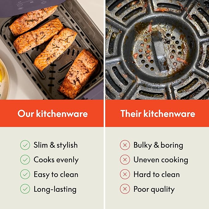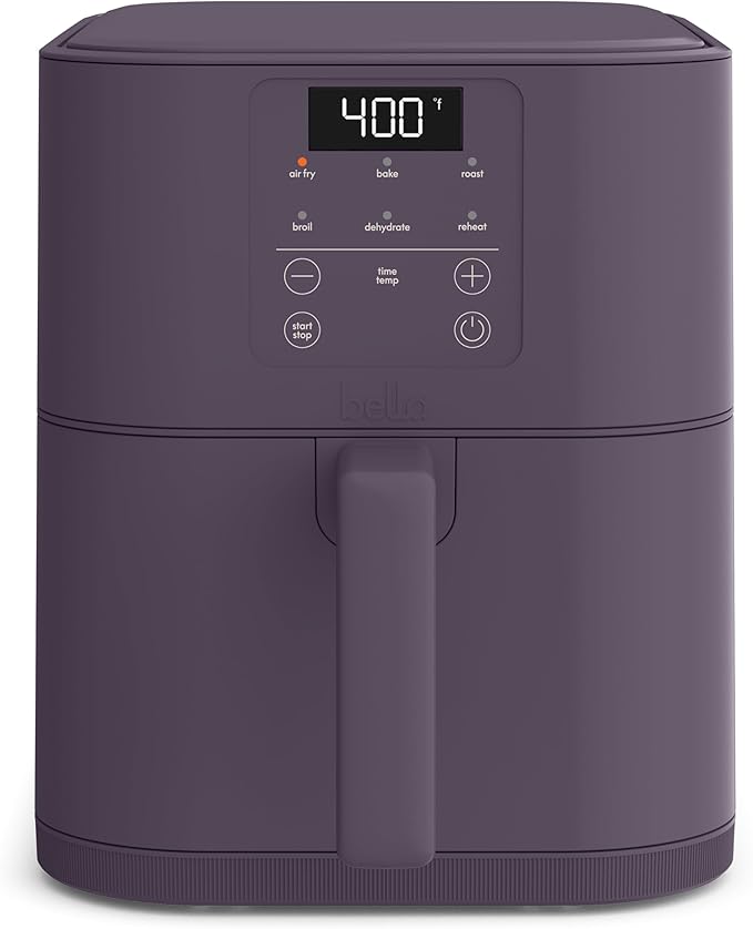 bella 6 Qt Slim Air Fryer, Fits-anywhere™ Kitchenware, EverGood™ Ceramic Nonstick Coating, Adjustable Temperature, 6 Preset Cooking Options, 60 Min Auto Shutoff w Audible Tone, 5lb Capacity, Plum