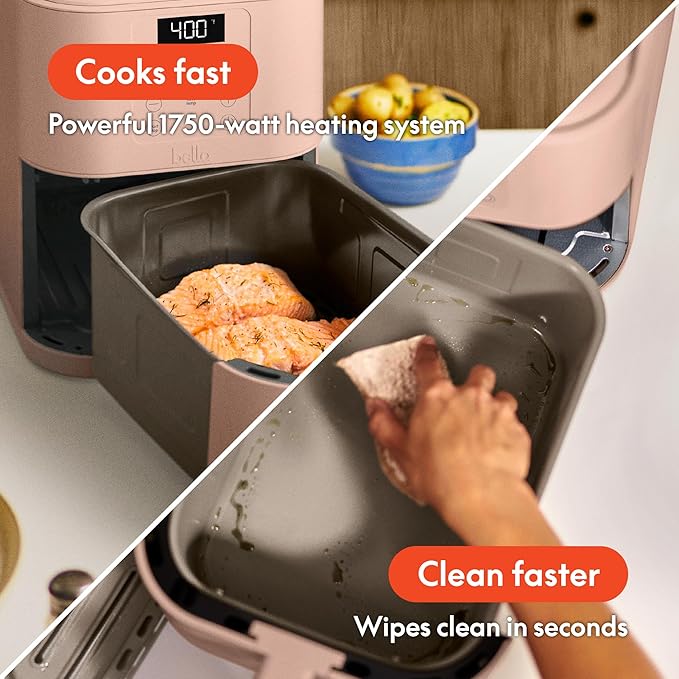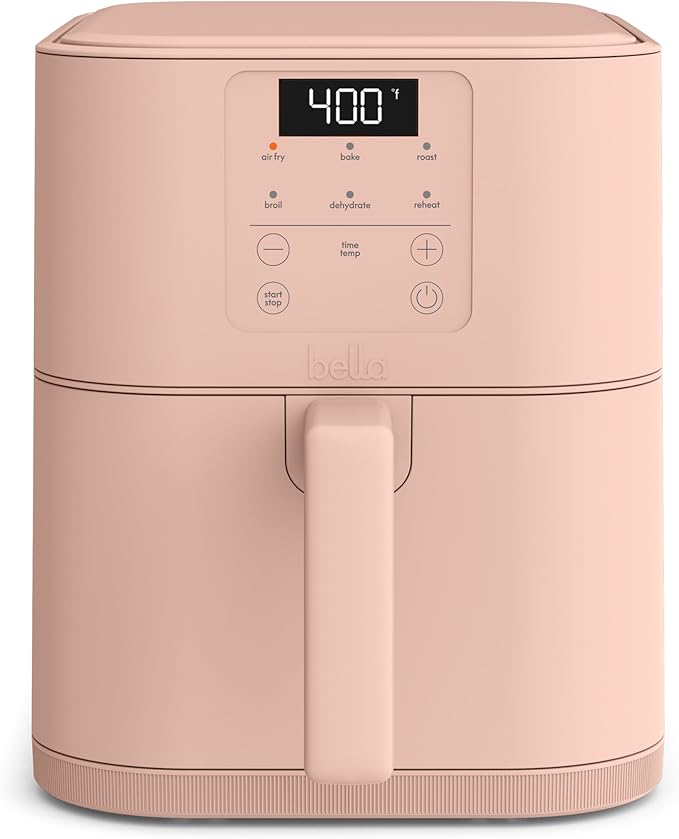 bella 6 Qt Slim Air Fryer, Fits-anywhere™ Kitchenware, EverGood™ Ceramic Nonstick Coating, Adjustable Temperature, 6 Preset Cooking Options, 60 Min Auto Shutoff w Audible Tone, 5lb Capacity, Blossom