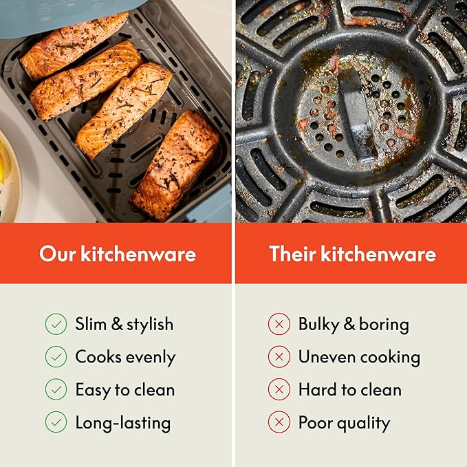 bella 6 Qt Slim Air Fryer, Fits-anywhere™ Kitchenware, EverGood™ Ceramic Nonstick Coating, Adjustable Temperature, 6 Preset Cooking Options, 60 Min Auto Shutoff w Audible Tone, 5lb Capacity, Surf