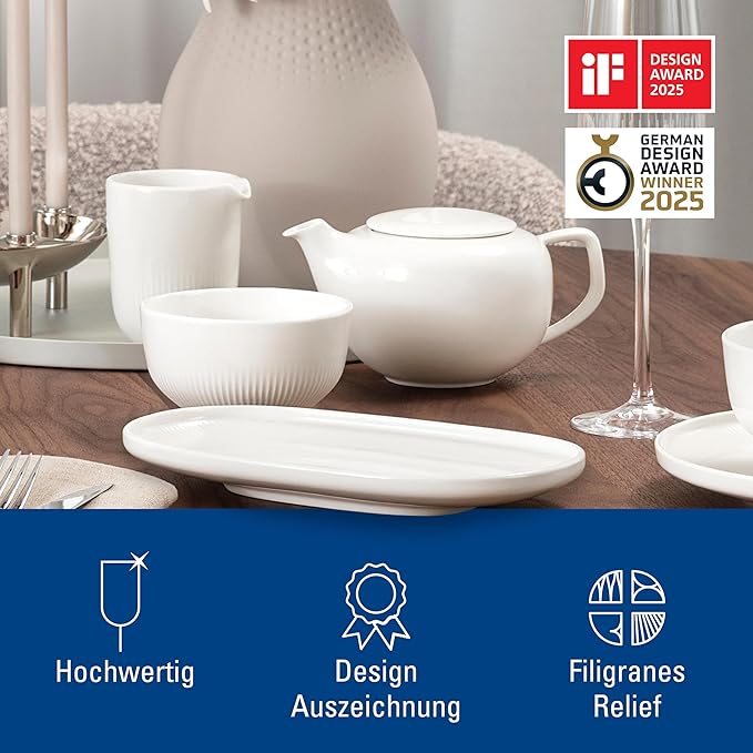 Villeroy & Boch Afina Gourmet Universal Plate/Pickle Dish, Premium Porcelain, Made in Germany, Dishwasher and Microwave Safe, 9 x 5 in, Stackable, Rich, Creamy White