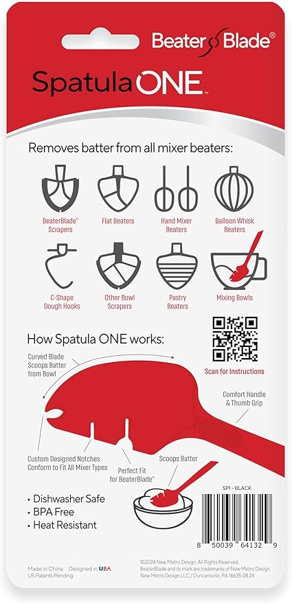 About This Custom notches remove batter with one swipe; curved blade effortlessly scoops batter from bowl Stainless steel core prevents... Read more