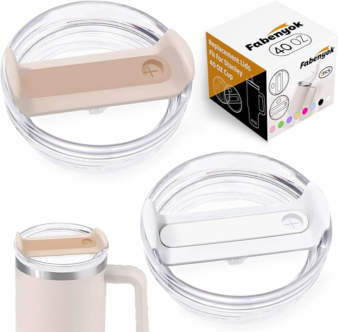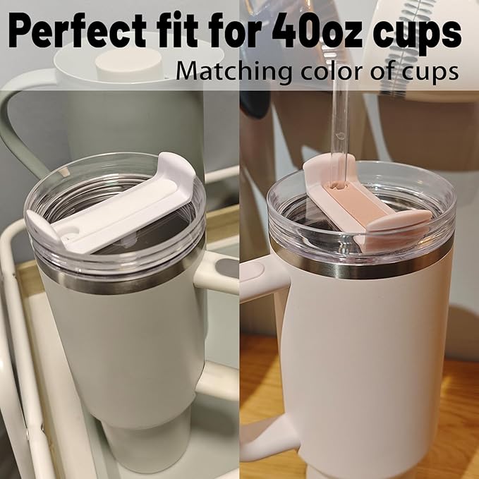 40 OZ Tumbler Lid Replacement Fit for Stanley Cup, 2 Pack Clear Replacement Lids Fit for Stanley Travel Tumbler, Spill Proof Tumbler Covers for Stanley Cup Accessories (White+Rose Quartz)