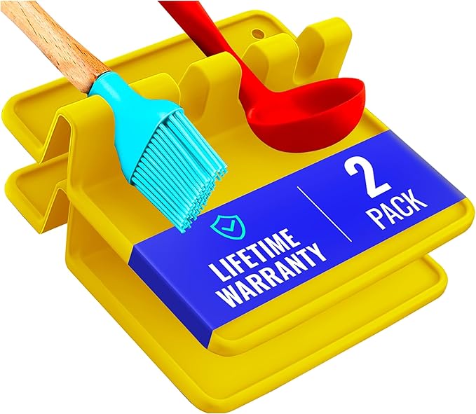 Yellow Silicone Spoon Rest for Stove Top with Drip Pad (Two Pack) - Heat Resistant BPA Free Utensil Rest & Spoon Holder for Kitchen Counter - Grill Utensil Holder - Spatula Holder, Tongs, Ladle