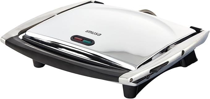 IMUSA 12x10in Stainless Steel Electric Panini Press with Temperature Control, Nonstick Plates for Sandwiches, Grilled Paninis, Quesadillas, and More