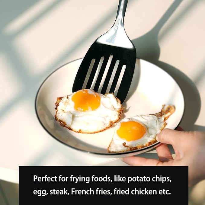 Brushed Slotted Stainless Steel Turner, Metal Spatulas for kitchen Use, Non-Slip Slotted Turner with Ergonomic Handle, Heavy Duty Cooking Utensils for Flipping Grilling Fish Eggs