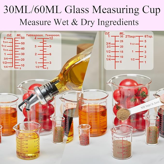 About This Complete Measuring Beaker Set – Includes 7 glass beaker measuring cups: 1 tsp (5ml), 1 tbsp (15ml), 1oz... Read more