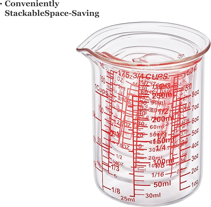 Ackers 7-Piece Glass Measuring Cup Set, Borosilicate Beaker Style Nesting Liquid Measuring Cups
