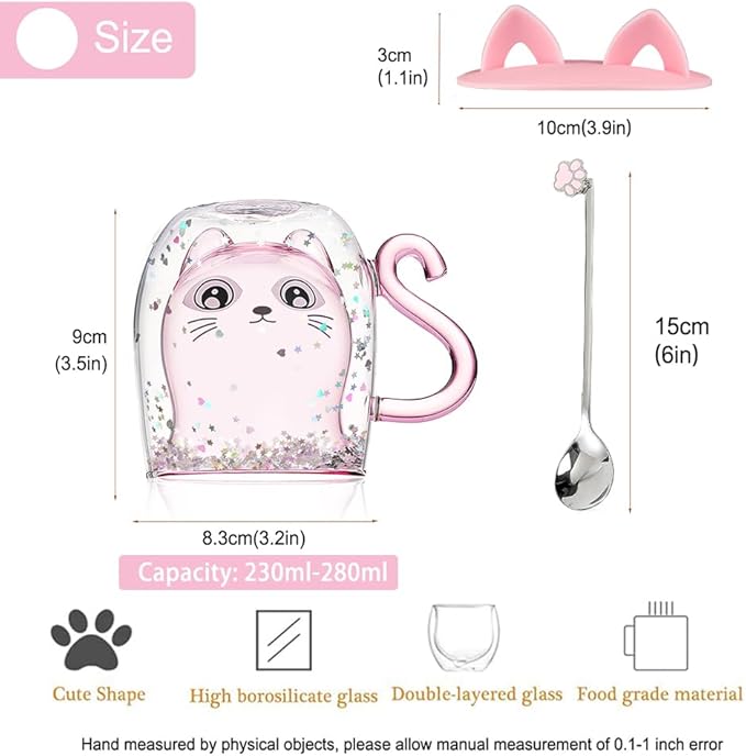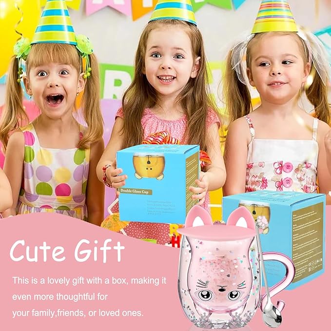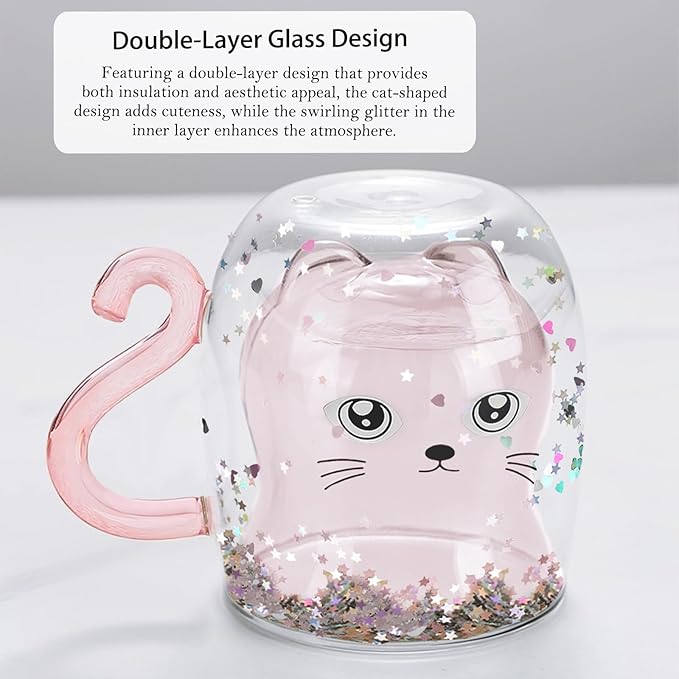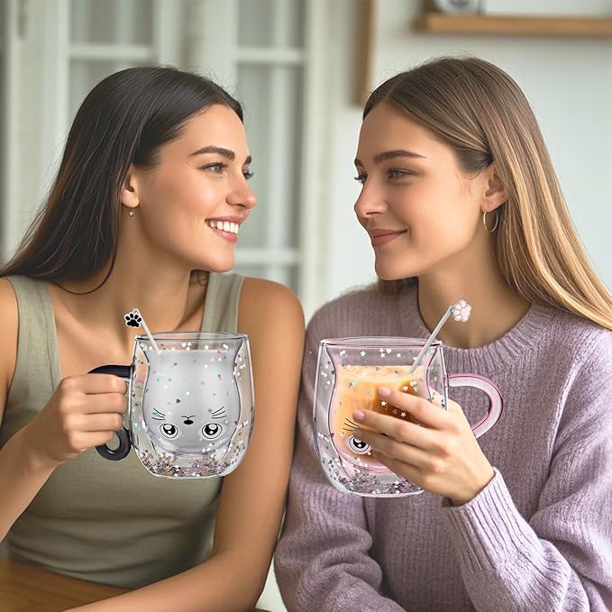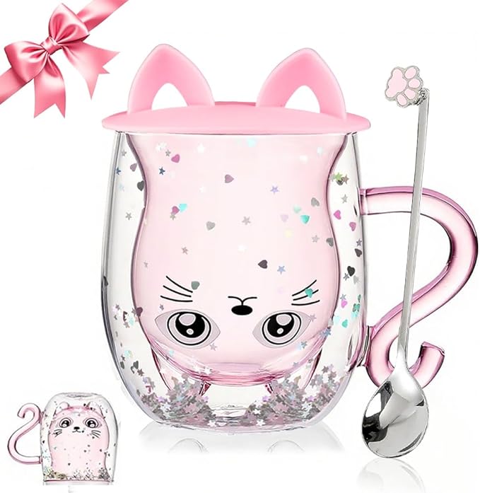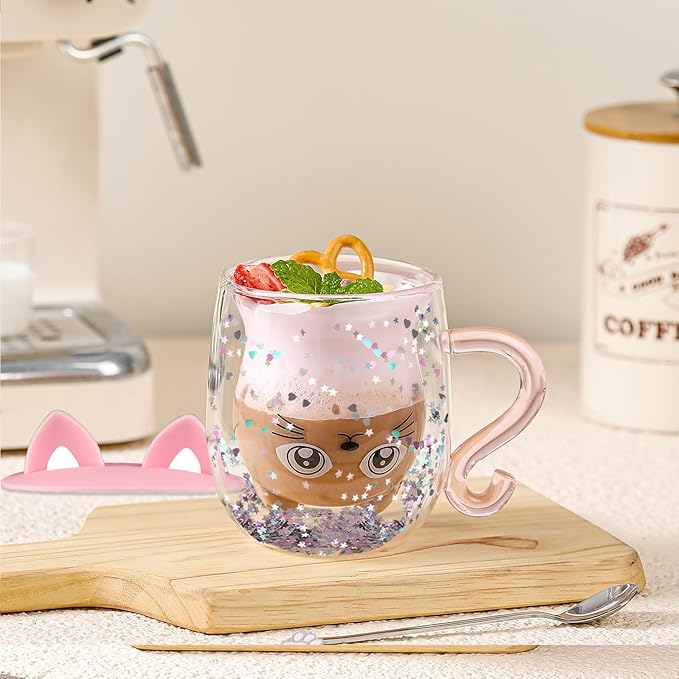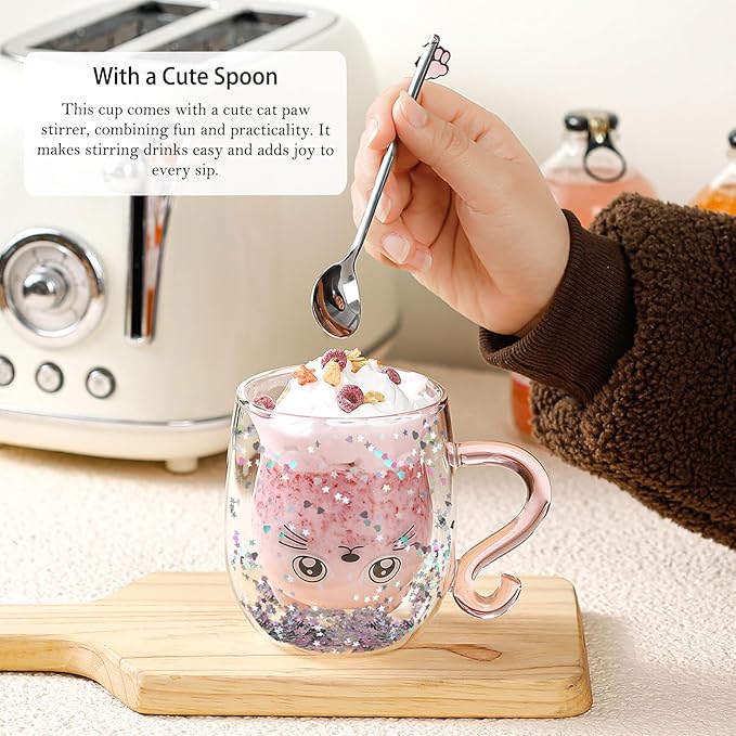 Gifts for Women Cat Gifts Double Walled Glass Coffee Latte Cup Cute Stuff Cat Mug Gifts for Her Christmas Stocking Fillers,Birthday,Valentines,Halloween Presents for Women,Kid,Mum,Teacher