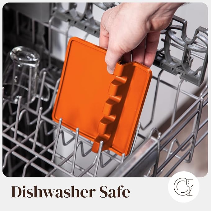 Orange Silicone Spoon Rest for Stove Top with Drip Pad (Two Pack) - Heat Resistant BPA Free Utensil Rest & Spoon Holder for Kitchen Counter - Grill Utensil Holder - Spatula Holder, Tongs, Ladle