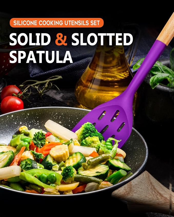 Pack of 2 Silicone Spatula, Non Stick Cooking Utensil Set, Wooden Handle Kitchen Turner for Baking Mixing Grilling Serving Food Heat Resistant (BERRY)