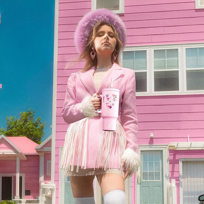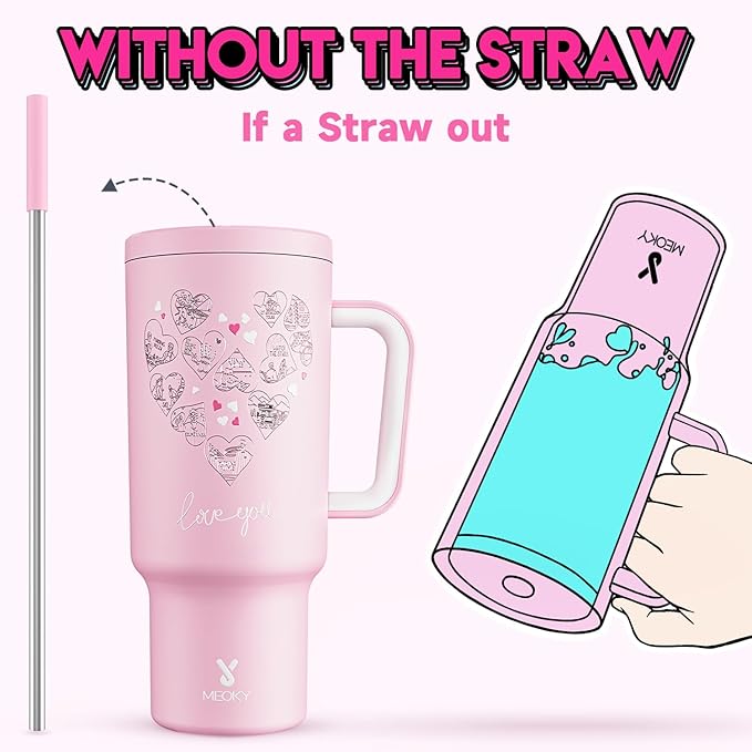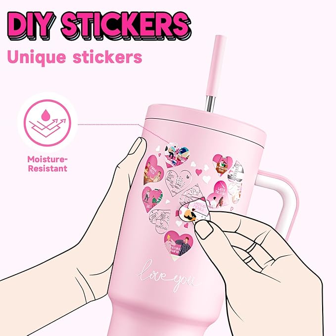 Meoky 40 oz Tumbler with Handle for Couples: Stainless Steel Insulated Tumbler with 24 Waterproof Love Stickers - Girlfriend Boyfriend Wife Husband, Love You