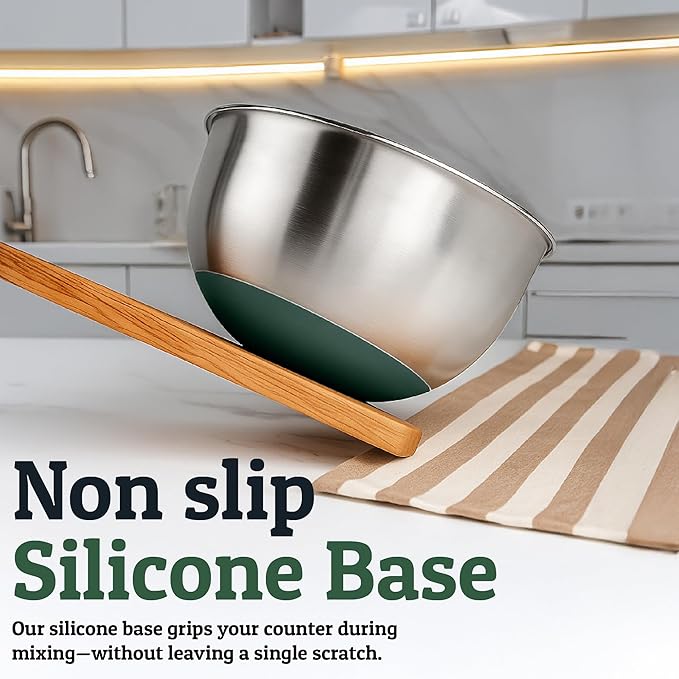 Priority Chef Stainless Steel Mixing Bowls with Lids Set, Metal Nesting Bowls with Airtight Lids, Graters, Non-Slip Base & Measurement Marks, Includes Utensil Set for Prep, Baking & Storage, Green