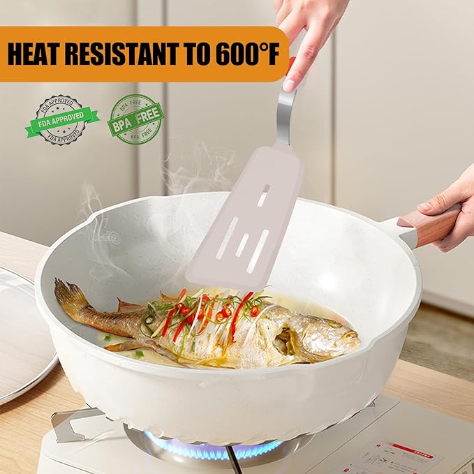 Beijiyi Silicone Spatula Turner Set of 3, 600°F Heat Resistant Nonstick Turner Spatulas for Kitchen Use, Large Flexible Silicone Cooking Utensils Rubber Spatula Set for Egg, Pancake, Fish (Khaki)