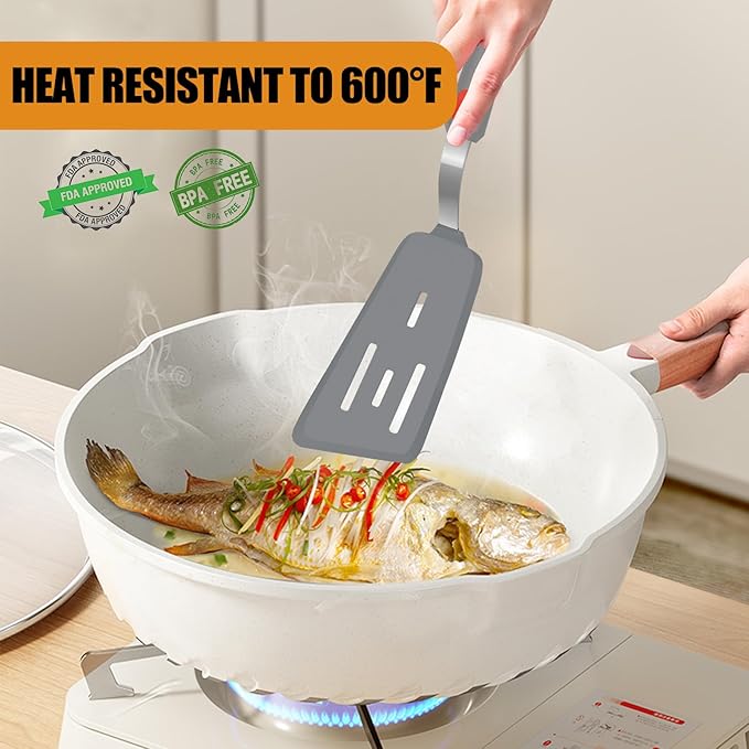 Silicone Spatula Turner Set of 3, Beijiyi 600°F Heat Resistant Cooking Spatulas for Nonstick Cookware, Large Flexible Kitchen Utensils BPA Free Rubber Spatula Set for Egg, Pancake, Fish (Gray)
