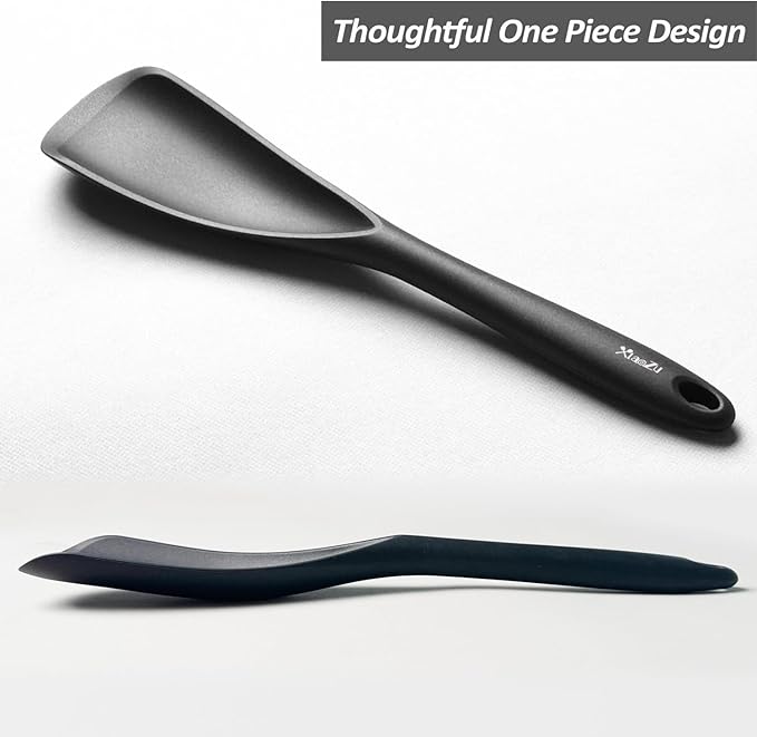 Silicone Spatula Spoon, Great for Both Cooking and Serving Durable BPA-Free Matte Black Silicone, Seamless Design, Safe for Nonstick Cooking Surfaces, 2-Pcs, Black