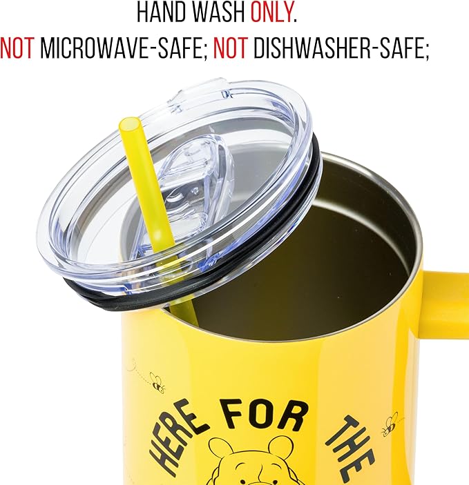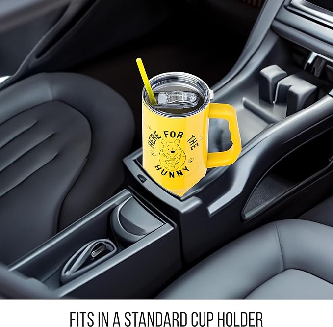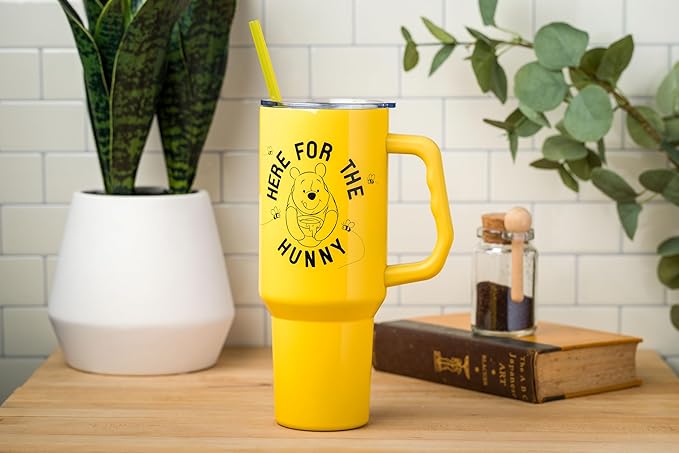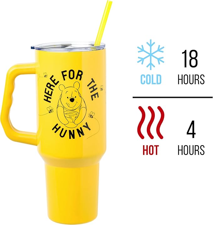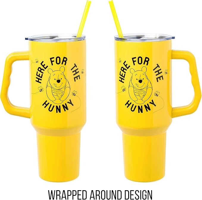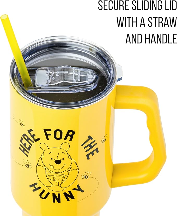 Silver Buffalo Disney Winnie the Pooh Here for the Hunny Stainless Steel Tumbler with Handle and Straw, Fits in Standard Cup Holder, 40 Ounces