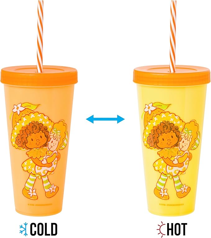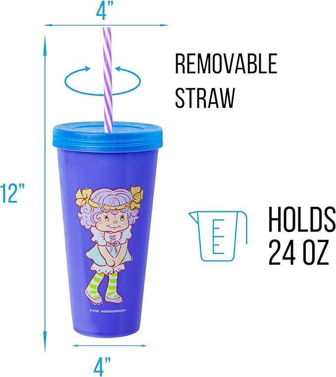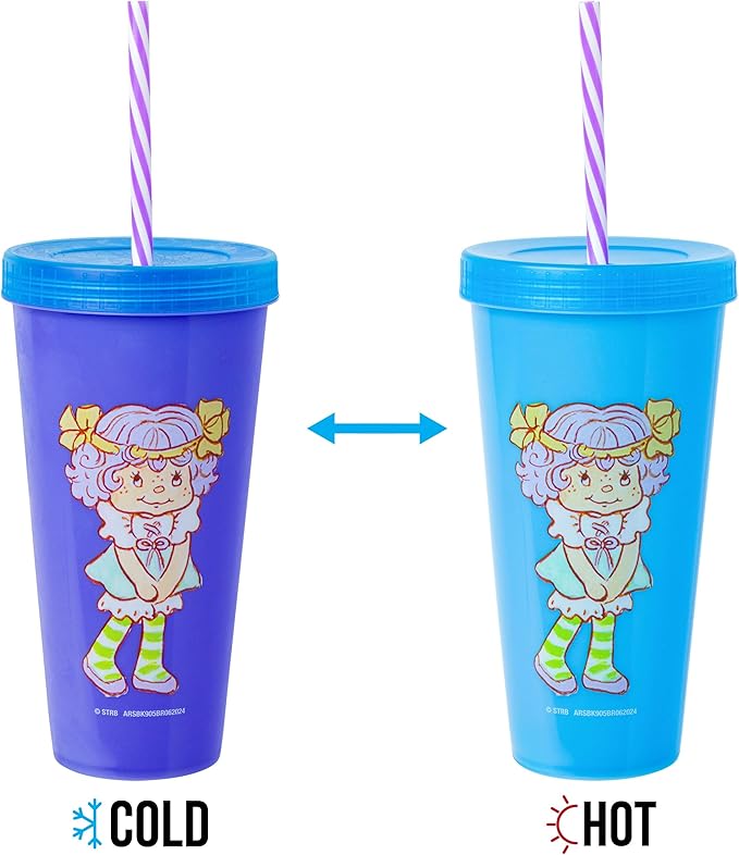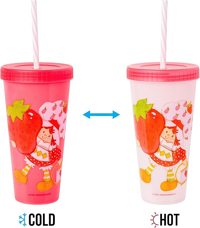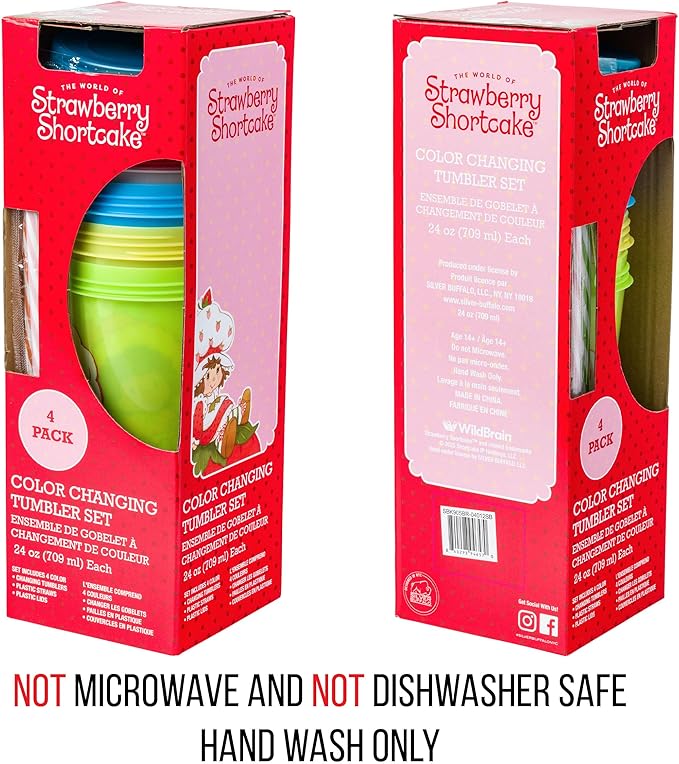 Silver Buffalo Strawberry Shortcake 4 Pack Color Change Plastic Tumbler Featuring Lemon Meringue, Orange Blossom, and Angel Cake, 24 Ounces