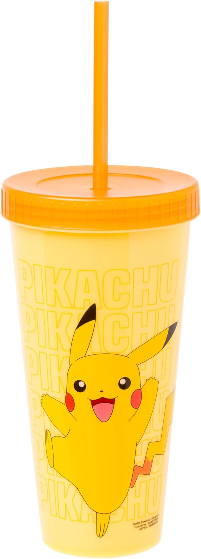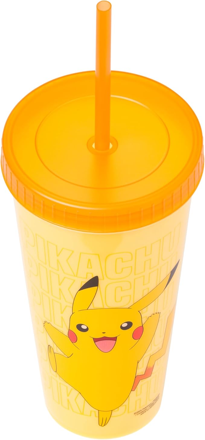 Silver Buffalo Pokémon Boxed 4 pack Color Change Plastic Tumbler Featuring Pikachu, Charmander, Bulbasaur, and Squirtle, 24 Ounces