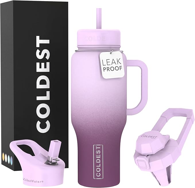 Coldest Tumbler with Handle and Straw - 100% Leak Proof Insulated Tumbler with Lid and Straw (3 Lids) - Stainless Steel Tumblers for Women & Men - Cup Holder Friendly Base, 36 oz (Tasty Lolipop)