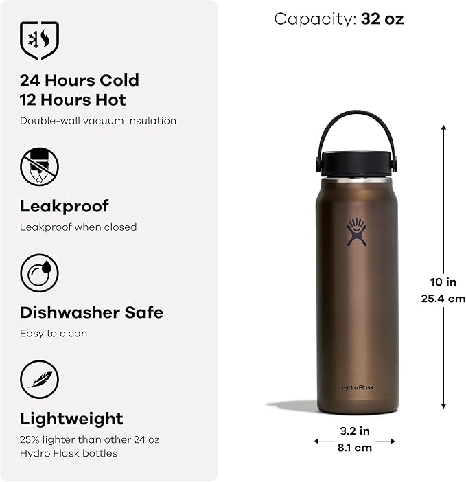 About This Lightweight hydration to keep you going 25 percent lighter than other Hydro Flask 32 oz Wide Mouth bottles... Read more