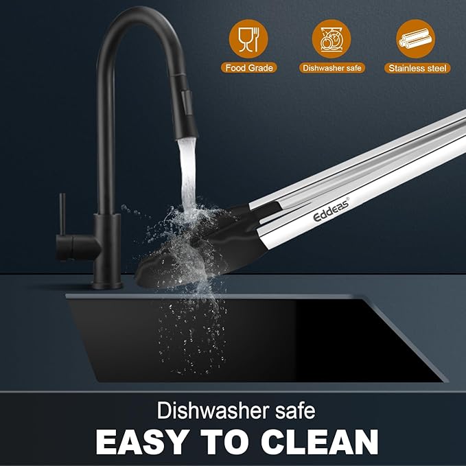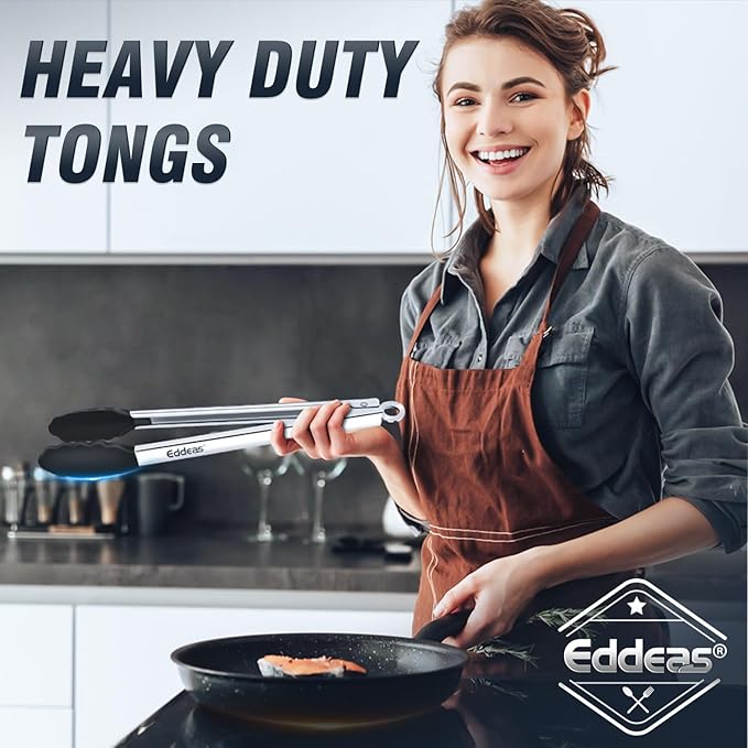 About This FOOD GRADE STAINLESS STEEL & SILICONE - Eddeas tongs for cooking featuring a food grade silicone head, the... Read more